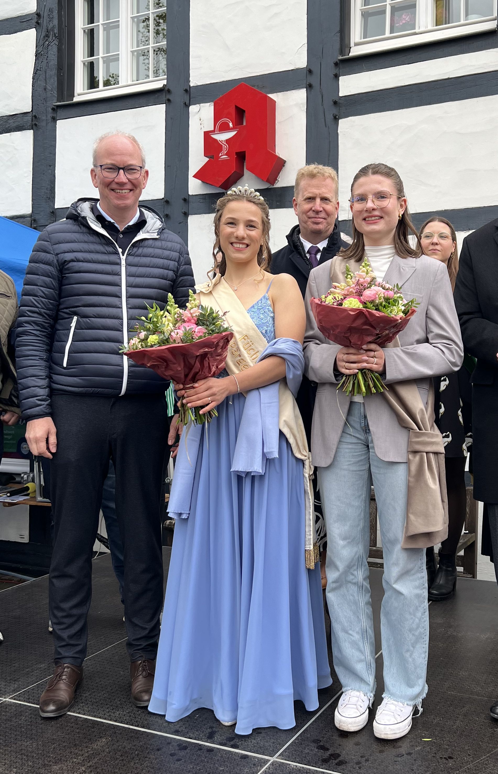 Füchtorfer Spargelfrühling! Auf rund 500 Hektar wird in Füchtorf Spargel angebaut: Grund genug für die gesamte Dorfgemeinschaft, den Saisonbeginn mit dem Spargelfrühling zu feiern. Am Sonntag war es wieder soweit: Zu den Klängen der Spargelfanfare gespielt vom Musikverein Füchtorf zog Spargelkönigin Vivien I. Ruhe die Spargelfahne in den Himmel über den Tie. Erstmals hatte sie dabei Hilfe, denn mit Kati Schürmann hat die Spargelkönigin seit Sonntag eine Adjudantin – natürlich standesgemäß geschmückt mit der passenden Schärpe, die Vivien I. überreichte.